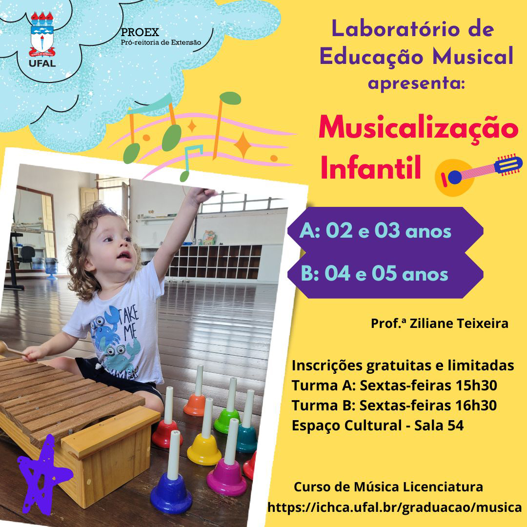 A Oficina de Musicalização Infantil é uma ação de extensão gratuita dentro do projeto Laboratório de Educação Musical, com realização do Curso de Música Licenciatura e da Pró-Reitoria de Extensão, da Universidade Federal de Alagoas. É coordenado pela professora Ziliane Teixeira.