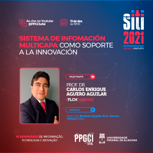 O Programa de Pós-Graduação em Ciência da Informação da Universidade Federal de Alagoas (PPGCI/UFAL) realiza, no período de 13 a 17 de dezembro de 2021, o III Seminário de Informação, Tecnologia e Inovação (Siti), com o objetivo de comunicar e divulgar as pesquisas em andamento e as pesquisas já desenvolvidas.