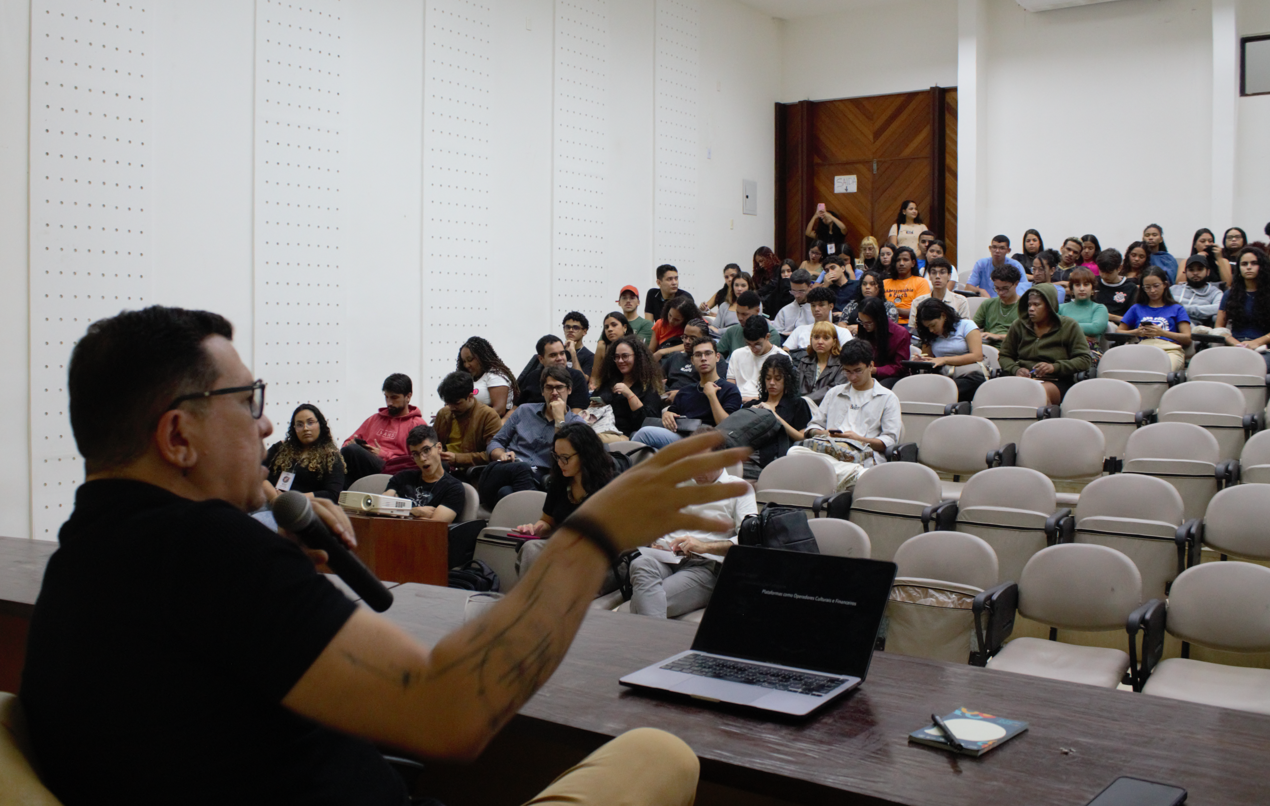Logo após a solenidade, foi realizada a aula magna com o professor Thiago Falcão, Coordenador do Programa de Pós-Graduação em Comunicação da Paraíba (PPGCOM-UFPB). Com o tema “Do Neoliberalismo às Bets: a gramática financeira da cultura digital”. A mediação da aula ficou sob responsabilidade do professor Marcelo Robalinho, docente do PPGCOM-Ufal Na parte final da atividade, foi aberto espaço para perguntas do público, o que permitiu um debate entre os participantes.