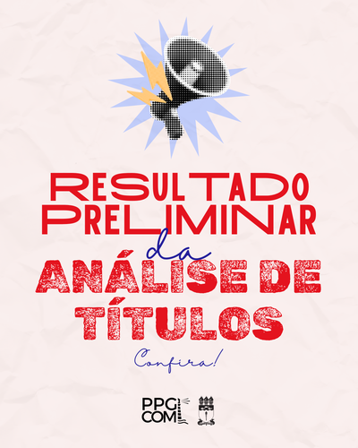 A Coordenação do Programa de Pós-Graduação em Comunicação da Universidade Federal de Alagoas (PPGCOM-Ufal) torna público o resultado preliminar da análise de títulos do processo seletivo referente ao Edital nº 02/2025 – PROPEP/CPG/UFAL/PPGCOM, para a Turma 2026 do Mestrado em Comunicação da Ufal .